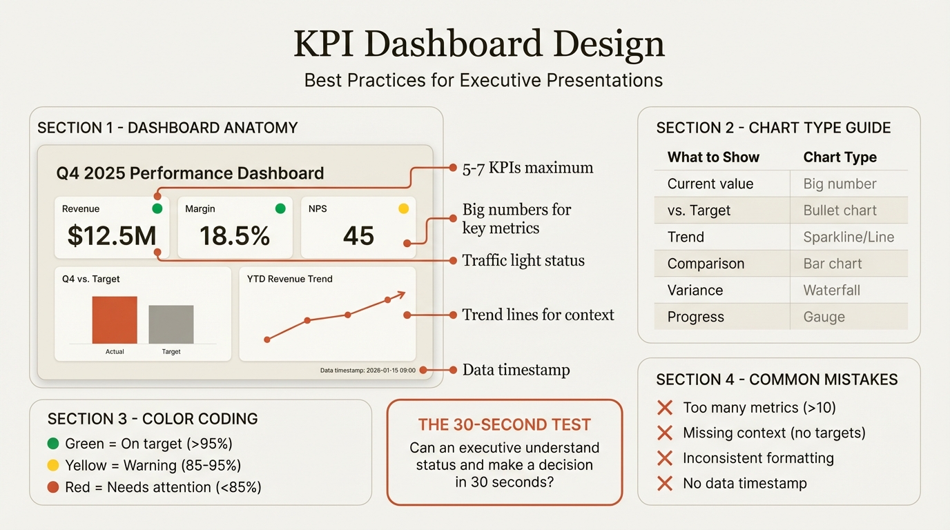 For guidance on designing effective KPI presentations, see our KPI Dashboard PowerPoint guide.